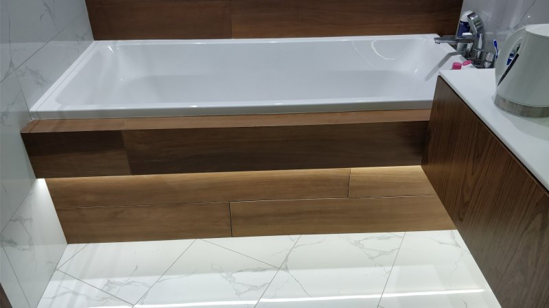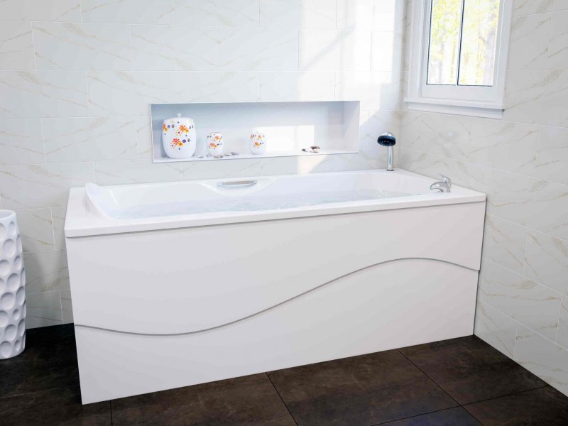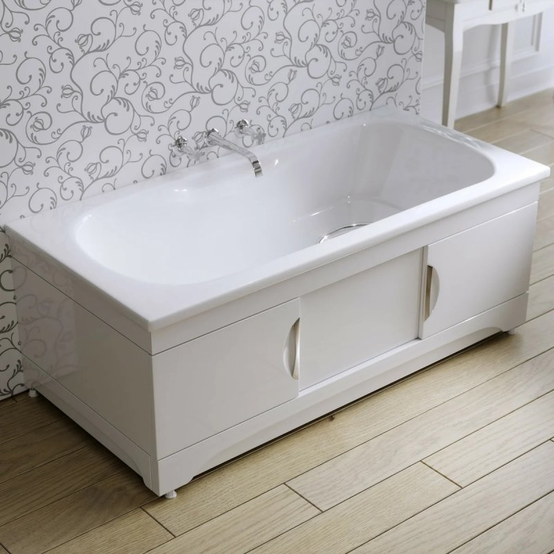 - декоративное «заграждение» не должно мешать комфортному использованию. Если снабдить панель ножками, оставить щель или выемку для ног, будет гораздо удобнее чистить ванну или купать в ней ребенка – пальцы ног не будут упираться в стенку и наклоняться станет гораздо проще. Такие приспособления позволяют быстрее заметить воду, скопившуюся под ванной и устранить ее;