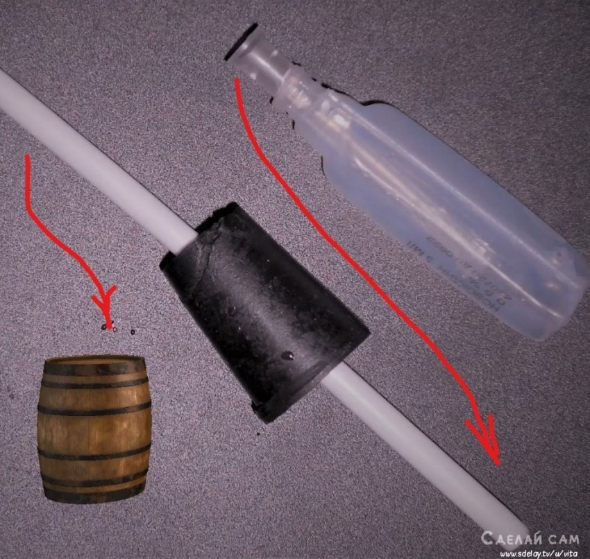Первый вариант: если у медицинской пипетки со стеклянной трубкой, испортилась (что часто бывает) резиновая, то ее можно заменить пластмассовой, вставив, без особого труда, трубку внутрь такой помпы.