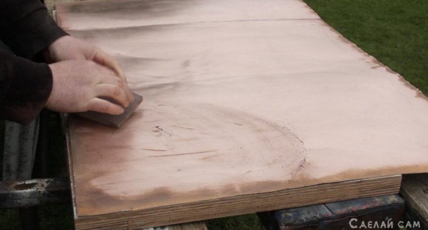 Столешницу делаем из толстой фанеры. Оббиваем ее тонким стальным листом.