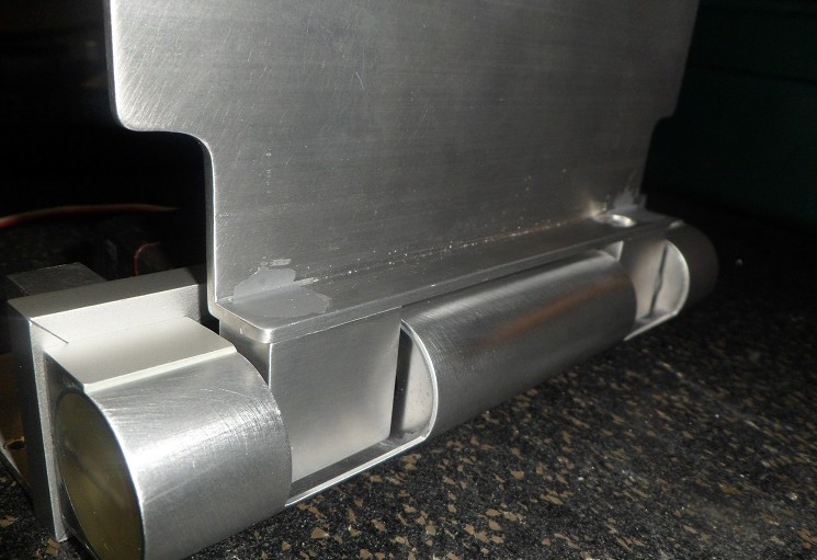 Уголок из алюминия использовал толщиной 3 мм. Он должен нести основную нагрузку. Делаем разметку под большую серву и боковые кронштейны. Боковые кронштейны сделал по такому принципу: в прямоугольную трубу 30х15х1.5 мм вставил квадрат 12х12 мм и все обжал винтами. Весь алюминий, который использую в работе конструкционный и размеры ГОСТ-овские, поэтому можно подобрать все по размеру. Итак внутренний размер прямоугольной трубы идеально совпал с наружным размером квадрата.