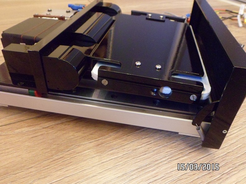 Хочу поделиться одним из вариантов изготовления СИСТЕМЫ ПЕРЕМЕЩЕНИЯ монитора в машине. Цель - попытаться сделать достаточно надежную и качественную систему. В варианте, который буду описывать, использована реечная передача для перемещения каретки и коническая передача для подъема монитора в вертикальное положение. Компоненты системы: