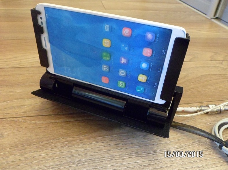 Хочу обратить внимание на такой момент-сначала сверлим глухое отверстие ?6 и глубиной не более 10 мм. Затем расширяем отверстие до ?10 и глубиной max 5 мм. Объясню для чего это нужно. У подшипника, который я использую есть реборда-она не даст ему провалиться в отверстие и в дальнейшем позволит удобно зафиксировать. А в углубление ?6 кладем шарик от подшипника ? 5-5,5 мм для того, чтобы в дальнейшем наша ось не «клинила», упираясь торцом. Теперь изготовим саму площадку для монитора. Хочу добавить, что описанный вариант делается под планшет размером 190х112х10. Прикинув размеры вырезал такой «подиум».