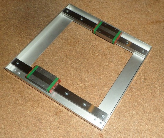 Для начала сделаем основу-раму. Размеры всех заготовок и деталей должны быть максимально точны. Сотки миллиметров можно игнорировать, даже десятки можно не брать в расчет, но в миллиметрах все должно быть точно. Итак делаем раму. Используем тяговые заклепки. Углы проверяем- 90° обязательное условие. Крепим линейные подшипники. Я использовал заклепки - гайки. Все резьбовые соединения ставлю на вот такой фиксатор