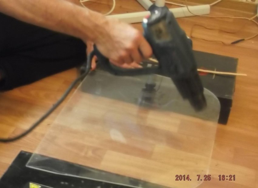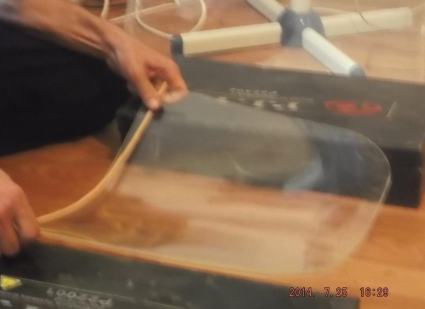 Оргстекло 4мм. Феном, нагреваем оргстекло до получения подходящей формы стекла. Болты,крепления, и гаики осталось покрасить черным лаком. Ножовочное полотно, обломать и отрезать оргстекло путем прочеркивания.