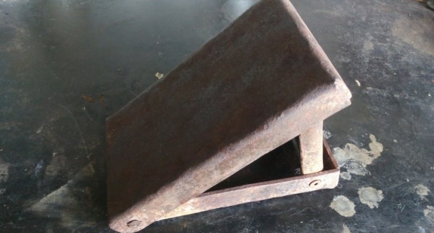 Взял сталь 3 мм, вырезал ножовкой по металлу ( в то время как-то не часто встретишь шлифмашинку) и согнул в тисках при помощи молотка.