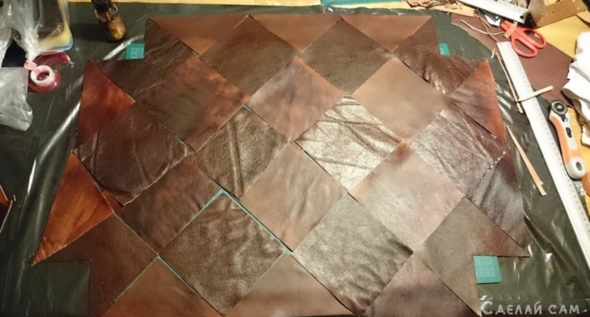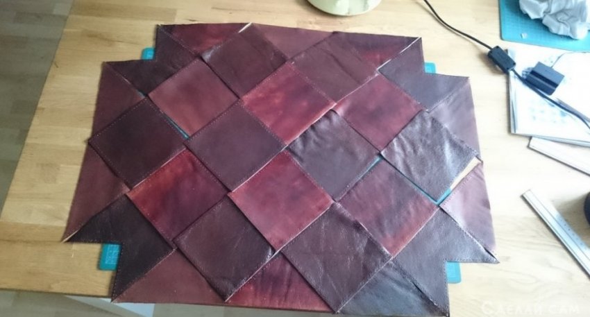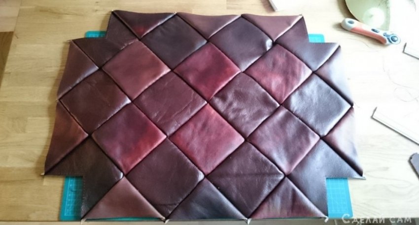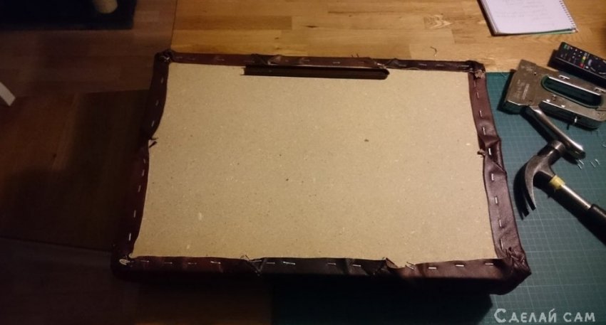 Натягиваем кожу, фиксируем степлером сзади.