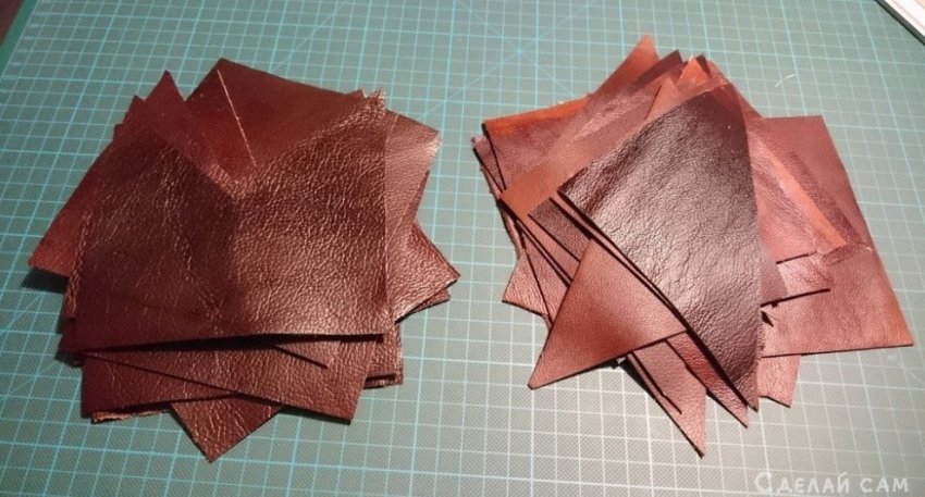Из кожи нарезаем кусочки.
