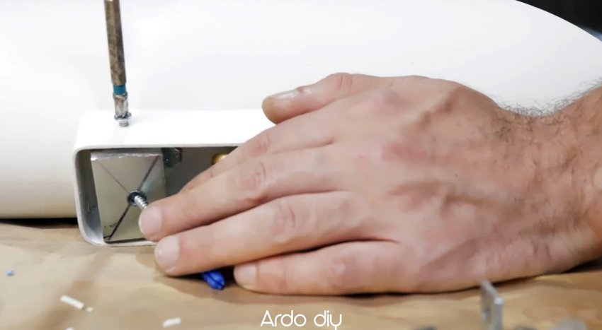 В корпусе по центру рамки сверлится отверстие для провода. Затем размечаются и делаются отверстия для крепления патронов. После прикручиваем последние внутрь бра для проверки.