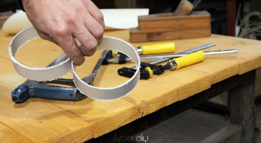 Приклеиваем на ненужный обрезок трубы наждачку, и шлифуем рамки, чтобы скруглить их внутрь.