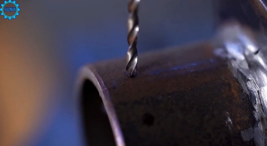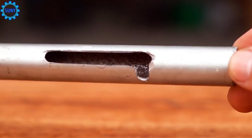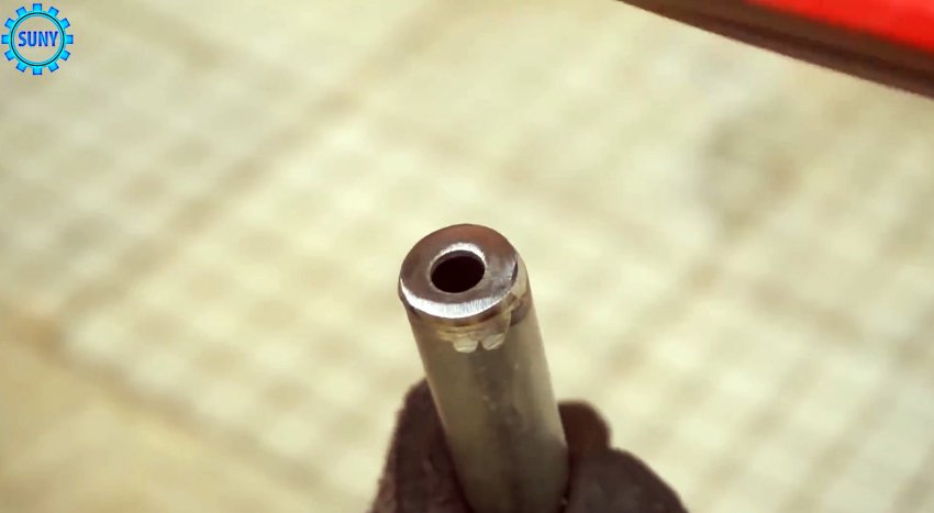 Сбоку трубки у верхнего края делаются отверстия по всей окружности. Затем в нее запрессовывается подобранная по размеру шайба.