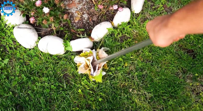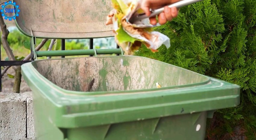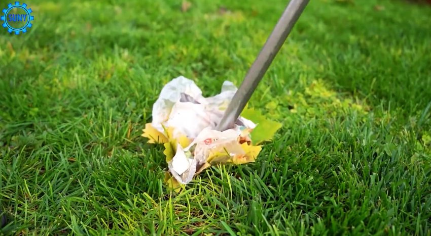 Для сборки мусора нужно выдвинуть острый штырь пики вперед, и зафиксировать его положение, заведя болт в поперечный пропил. После использования он задвигается обратно.