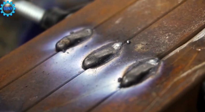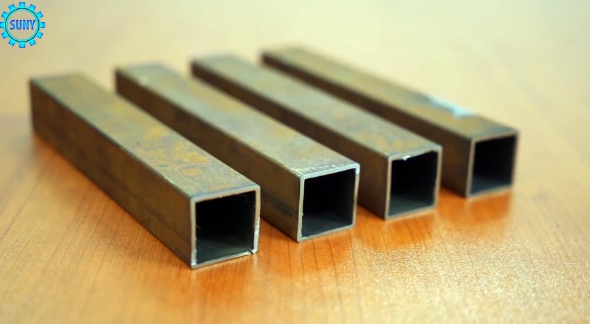 Для этой самоделки нужно подготовить 4 отрезка профильной трубы 20х20 мм длиной по 20 см. Они зачищаются, скалываются вместе и свариваются. Наплывы шва нужно сошлифовать.