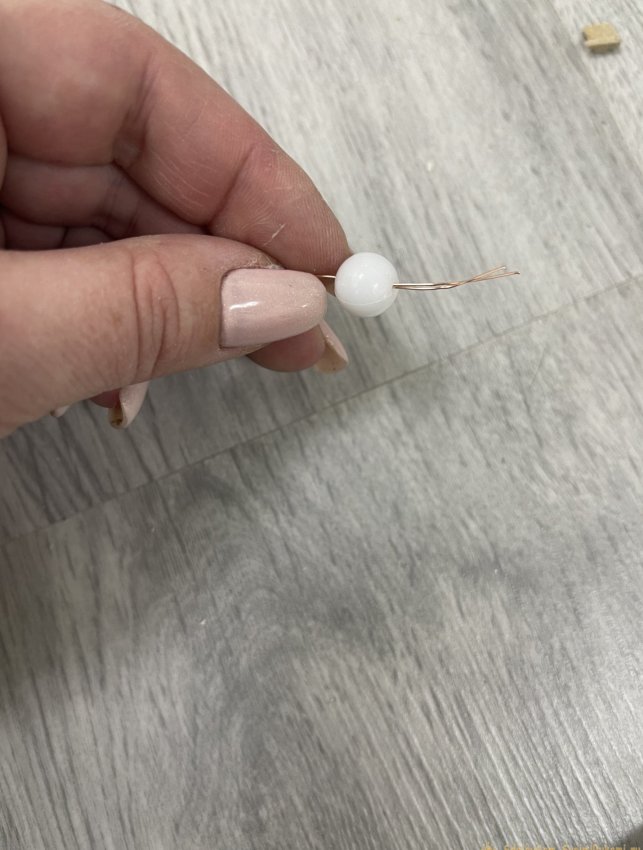 8. Свободный конец шнура вдеть в зажим, далее нанизать бусину и завязать на конце узелок.