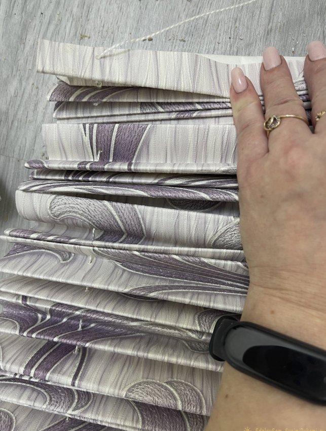 2. Далее нужно отмерить и отрезать необходимый кусок шпалеры. Ширину следует брать ту, которая получилась после измерения, а к длине прибавить около 40 см. Это делается для того, чтобы жалюзи не были короткими, поскольку впоследствии на загиб обоев длина уйдет.