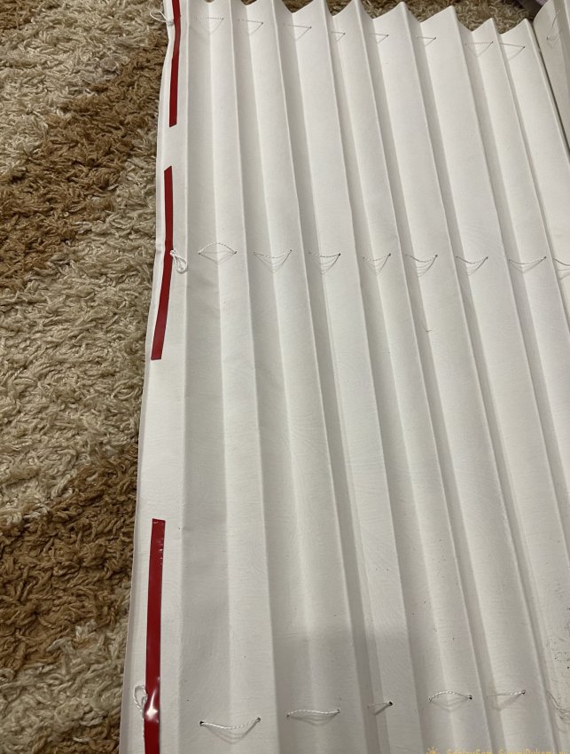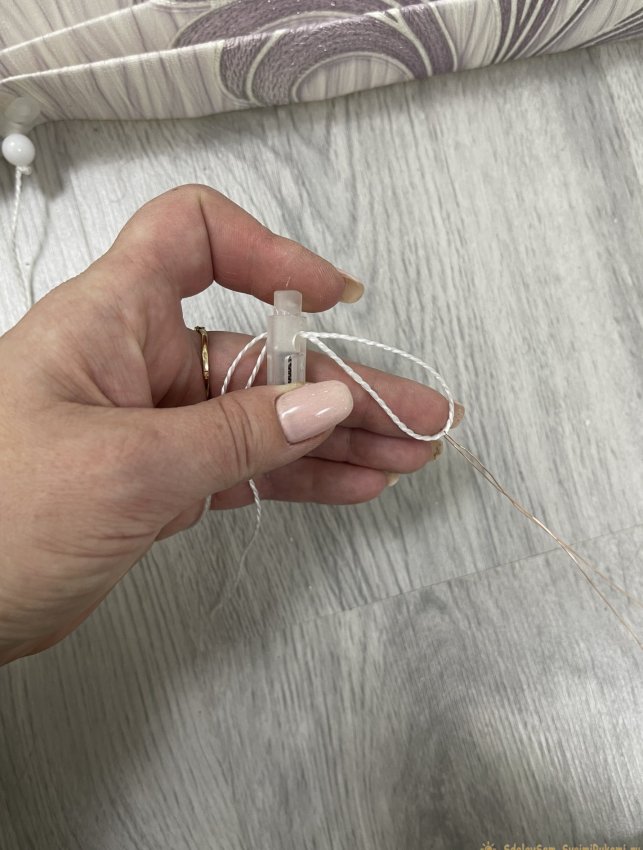5. Шнурок следует разрезать на 2 или 3 части (зависит от количества просверленных отверстий) длиной равной окну, плюс еще 5 см.