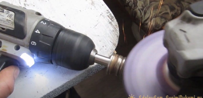 Зажал всё это дело в шуруповерт и начался долгий и упорный процесс обработки болгаркой зачистным кругом. (опять таки, сказывается отсутствие станков). Но, возможно без станков приятнее работать. Не так точно, но для души приятнее.
