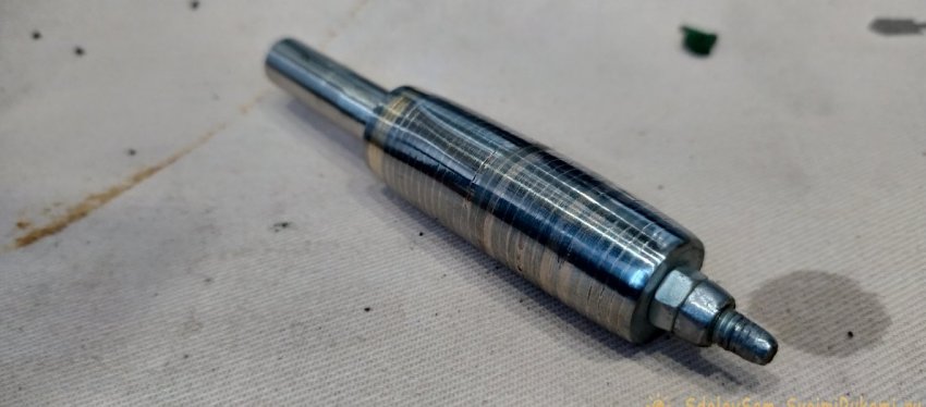 Дальше, с той стороны, где был винт, я немного сточил контрирующую гайку и насадил на это место маленький подшипник от сломанной болгарки. Лишнее сточил. Получился своеобразный упор для ладони, подобный тому, что делают на часовых отвертках.