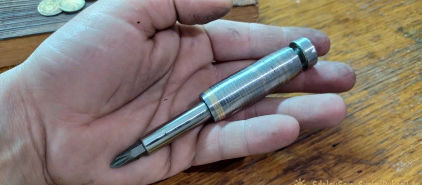 Данная идея пришла мне в голову совершенно случайно, но не без повода. Срочно требовалось разобрать ребенку игрушку, для замены батареек. Кинулся в шкаф, а отвертки на месте нет. Нашёл биту для шуруповерта. Взял шуруповерт, а аккумулятор разряжен…. Пока туда-сюда, ребенку уже и не интересно стало в эту игрушку играть.