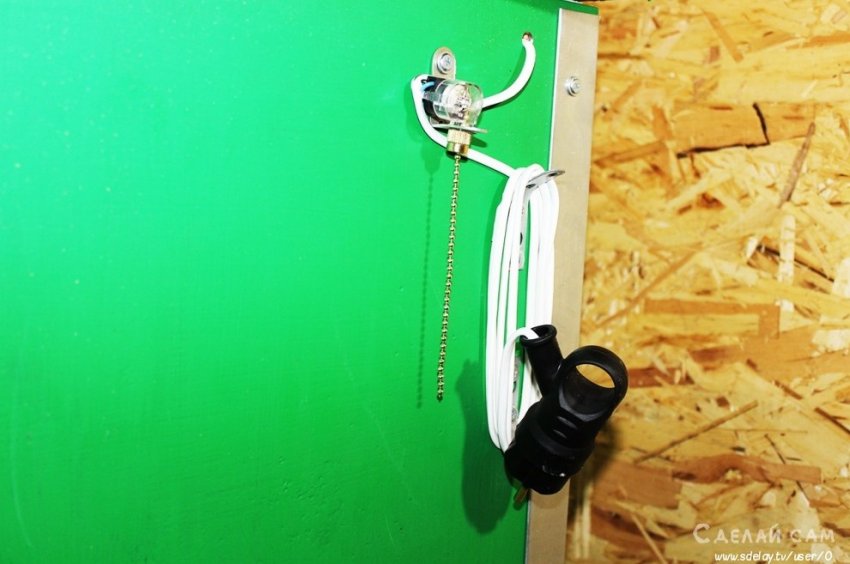 Прикрутил в нее патрон под лампочку и акуратно прокинул всю проводку. Нагревателем будет лампа накаливания на 40Вт