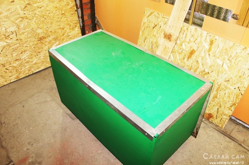 Самодельное хранилище для овощей с подогревом и защитой от грызунов или что можно сделать из листа старого железа. Приветствую вас уважаемые гости и читатели этой статьи. Сегодня покажу какое забабахал хранилище с минимальными затратами и максимальным использованием старых материалов-погнали. Давно эта идея не давала покоя-то руки или ноги не доходили до реализации. Рабочего подвала пока у меня нет-ну а грызунам это только на руку или на зуб)). Разгребая старые завалы, нашел лист старого но очень хорошего железа-понял, вот оно -надо делать. Прикинул размер-как раз на мой ящик хватит. НАПИЛИЛ ЗАГОТОВОК ПОЧИСТИЛ МЕТАЛЛ ПОКРАСИЛ ВСЕ ЗАГОТОВКИ НАЧИНАЮ СОБИРАТЬ ЗАГОТОВКИ -заранее заказал оцинкованные уголки нужных размеров, они будут работать соеденителями листов железа и заодно как декор. ПОТИХОНЬКУ НАЧИНАЮ СОБИРАТЬ САМ ЯЩИК-выдерживая прямой угол и диагональ. Края уголков загибаю и фиксирую. Теперь здесь точно не один грызун не пролезет)). Вот друзья ящик и готов. Теперь его надо утеплять. Здесь на выбор было два варианта-ПЕНОПЛАСТОМ или ПЕНОПЛЕКСОМ. По нужным мне параметрам-подошел ПЕНОПЛЕКС. А именно. ПРОЧНОСТЬ Низкая ТЕПЛОПРОВОДНОСТЬ ЭКОЛОГИЧНОСТЬ Кстати по теплопроводности ПЕНОПЛЕКС оказался на 30 % лучше ПЕНОПЛАСТА(при одинаковой толщине).Сам тест с замерами температуры есть в ролике-можете посмотреть. Ну а я пока начинаю утеплять. Клеятся листы очень просто-на клей пену-тут все уже придумано до нас-ничего изобретать не нужно, бери и делай)). Пока сохнет клей-начинаю готовить обогреватель. Его роль будет выполнять старая алюминиевая банка для крупы-походу еще времен СССР-тоже достал из старых залежей. Счистил с нее краску УСТАНОВИЛ ЕЕ по середине ящика. Прикрутил в нее патрон под лампочку и акуратно прокинул всю проводку. Нагревателем будет лампа накаливания на 40Вт Снаружи поставил выключатель и держатель провода. Ну вот друзья-наше хранилище готово-вот как оно выглядит со стороны. Хранилище получилось просто супер-теплое и прочное, то что нужно, для моего теплого Краснодарского края хватит за глаза. Размер получился из расчета железа-хватило как раз. При желании конечно можно сделать нужного размера -это не проблема. А так размеры следующие. ШИРИНА -50см. ВЫСОТА -50 см. ДЛИННА 110 см. Все замеры по внутри ящика. Сколько сюда влезет овощей-можете посчитать сами. Друзья-вот такая сегодня получилась полезная самоделка для хозяйства.Пишите-что думаете на этот счет, буду рад вашим лайкам и конструктивным подсказкам. Смотрите видео-там много дополнительных деталей, замеров и размеров-сами понимаете, сложно все описать текстом. Ну а я прощаюсь до следующих самоделок-всем пока. ХРАНИЛИЩЕ ДЛЯ ОВОЩЕЙ с Подогревом и Защитой от грызунов. СВОИМИ РУКАМИ Video of ХРАНИЛИЩЕ ДЛЯ ОВОЩЕЙ с Подогревом и Защитой от грызунов. СВОИМИ РУКАМИ