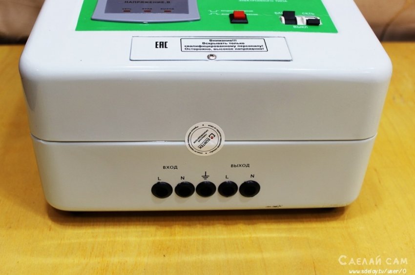 Понравилась в нем функция БАЙПАС, допустим есть период или сезон -когда у вас напряжение в норме-вы решили его не гонять и продлить время службы, или другие причины-вам его нужно отключить-не снимая с проводов-включаем БАЙПАС-все работает в обход него-как обычно.(см.видео).
