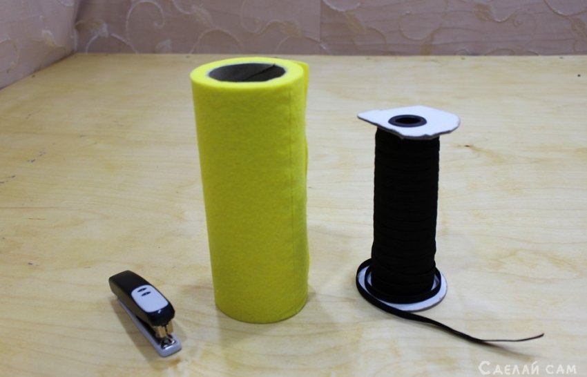 Тоже из нетканного материала,степлер и резинки.