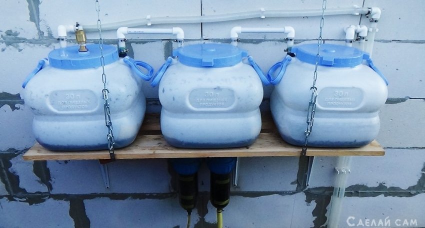 Все бочки соеденены между собой последовательно-всего их 3 штуки(при необходимости можно увеличить).