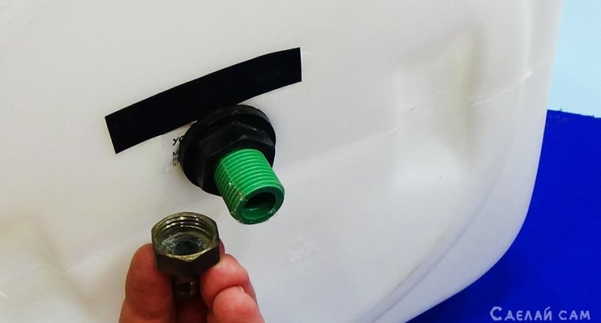 Тут и на видео вы увидите пластиковые штуцера для врезки в емкость.Поставил их в целях экономии это где то в 3 раза-но друзья работа показала что их все таки надо поменять на металические.Во первых у них толще стенка-меньше внутр.диаметр-в нашем случае это минус-вся система работает на самотеке-но это не самое страшное.