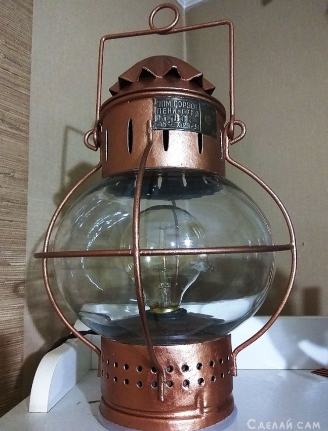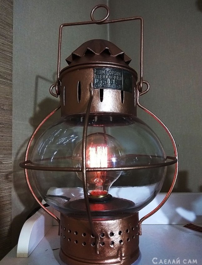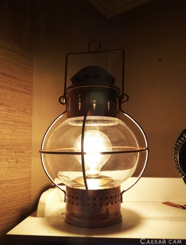 Всем привет! Оказался у меня случайно шлюпочный керосиновый фонарь ОЛМ ГорВог Ленинград 1958 г. № 6055 ОТК№6. Состояние фонаря было ужасное, зато колба целая! Бачок под керосин проржавел в мелкую сеточку, плюс фитиль испорчен. Решено было сделать из него электрический фонарь.