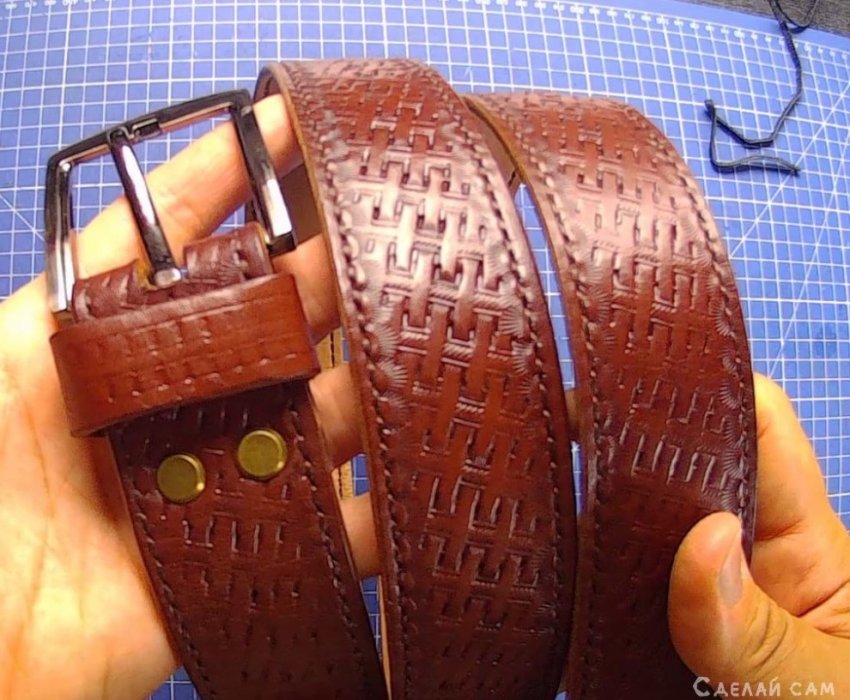 Для ремней я брала толстую кожу. Если предполагалось тиснение на ремне - брала заготовку растительного дубления, если узор был прост и предполагалась работа только штампами и возможно узор нитками - там кожа хромового дубления.