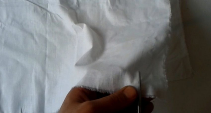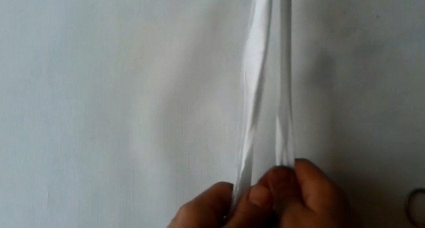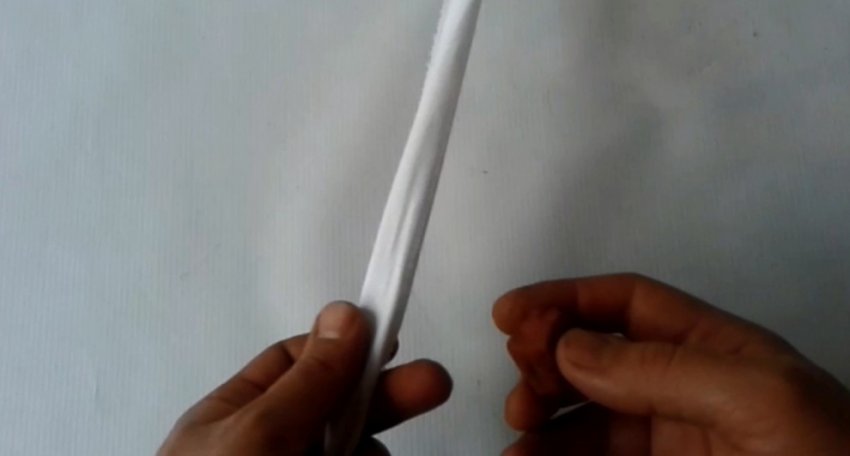 Для начала нам нужно отрезать ткань примерно шириной в 3 и длинной около 80 сантиметров.