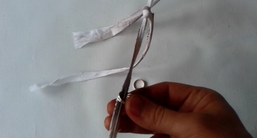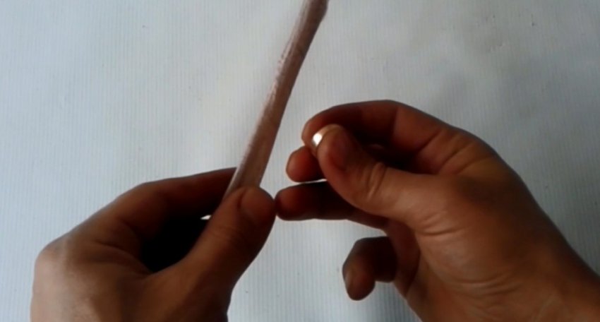 Далее складываем ее пополам и привязываем к ножке стола или к ручке двери, и натираем пастой.