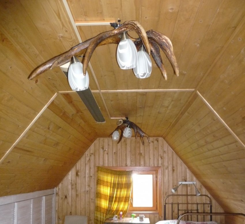 Пара лосиных рогов валялись у меня несколько лет и наконец им нашлось применение. Сделав в доме второй этаж, решил сделать из них люстры.