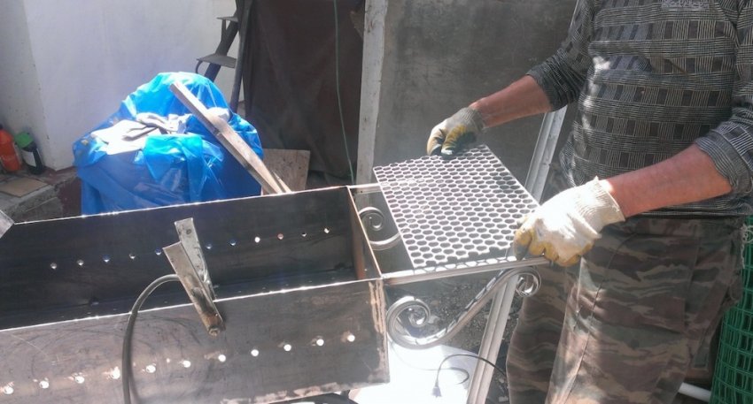 Основная часть мангала в сборе. Все готово для проваривания сваркой