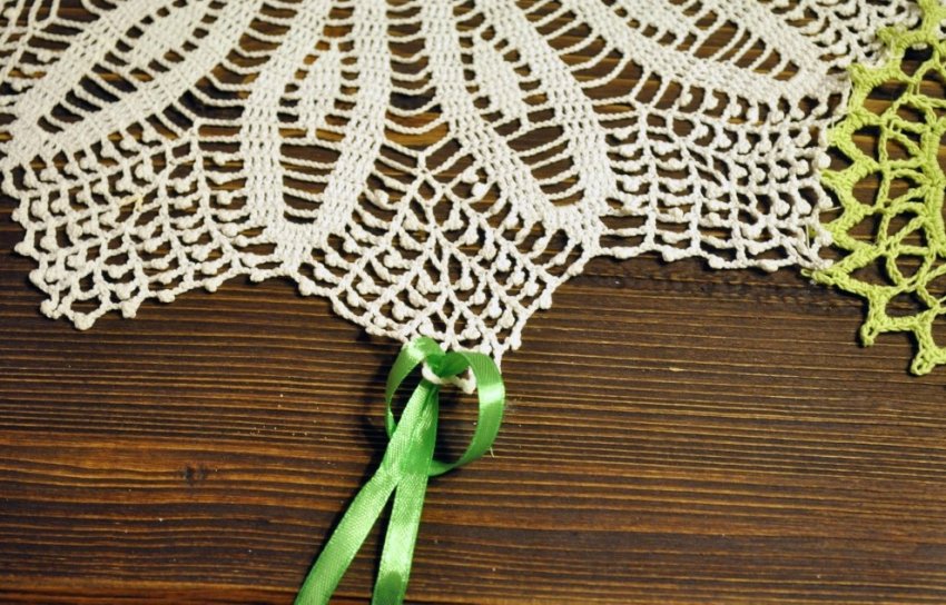 Сшила салфетки межлу собой. Чтобы повесить на карниз, прикрепила ленты.