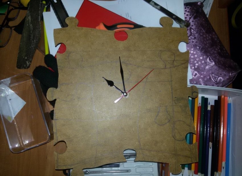 Всем привет. Захотелось сделать часы и решил приняться за работу. Нам понадобится двп не толстая, краска, маркер, лобзик, карандаш с линейкой и часовой механизм.