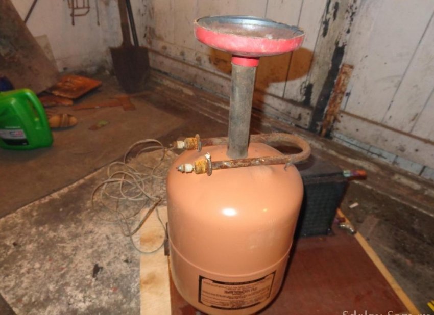 Зимой эту систему не испытывал, так как на лето приходится все снимать и увозить в гараж. Поэтому нет фото в сборе всего отопления. Теоретически, если дополнительно поставить еще 2 горелки и залить вместо воды «незамерзайку» или антифриз, то отопление не подведет. И по расходу газа, в сравнении с газовым котлом или газовой колонкой, экономия порядочная!
