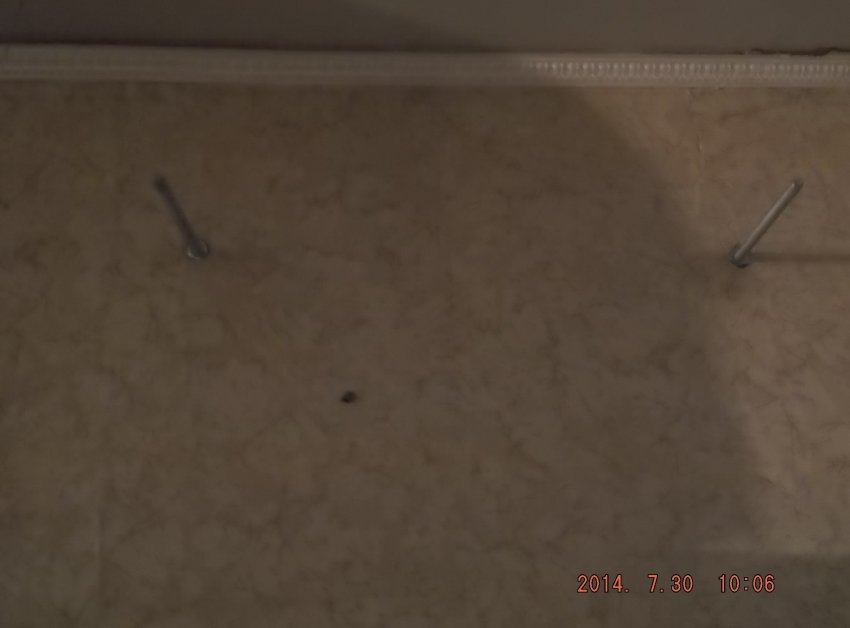 Сверлим перфоратором 2 дыры в стене, забиваем с помощью молотка в эти дыры штыри и закрепляем анкерами.