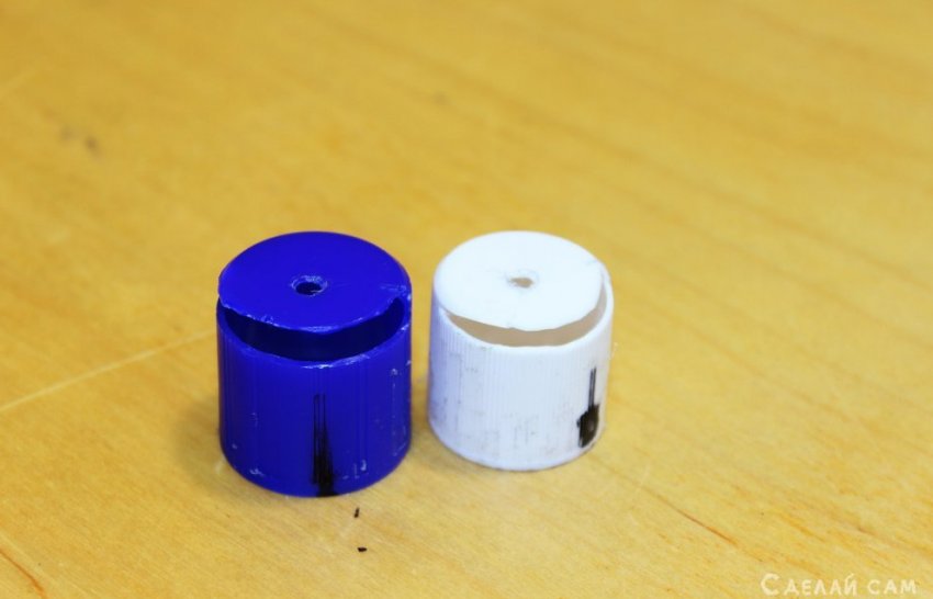 Что бы шайбы не высыпались самопроизвольно, на корпусе сделал специальные прорези(в видео подробней) которые совпадают с прорезями на колпачке.