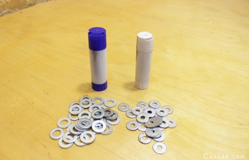 Надеваем колпачки обратно на тюбики и закладываю шайбы, подходящие по диаметру.