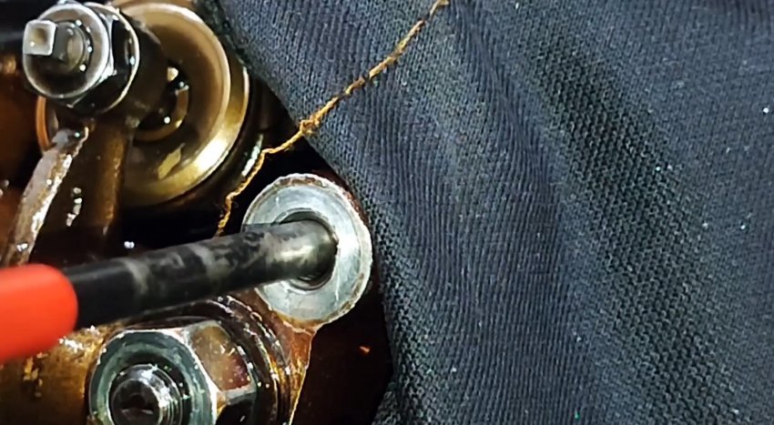 Для этого прикрываем его куском ткани, а метчик смазываем маслом. Также время от времени сдуваем стружку сжатым воздухом.