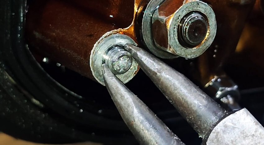 После того как поверхность излома покажется над резьбовым отверстием, обломок можно выкрутить пальцами, слегка надавливая на него, и вращая против часовой стрелки. Если сил пальцев не хватает для окончательного выкручивания обломка, можно воспользоваться круглогубцами.