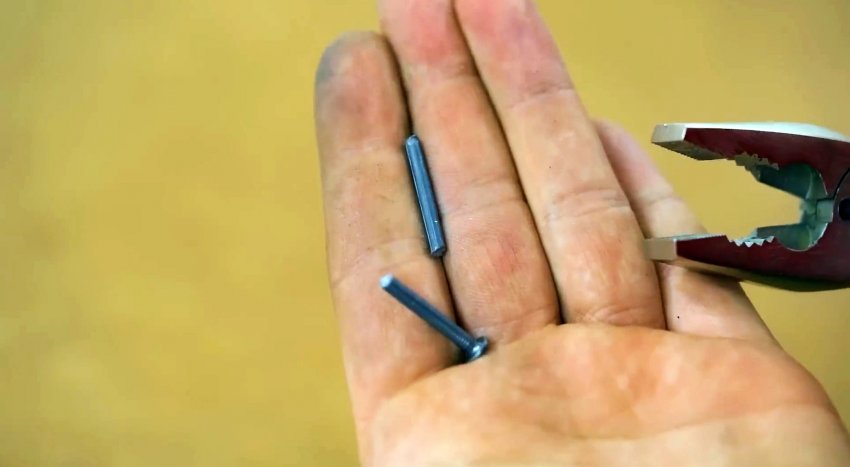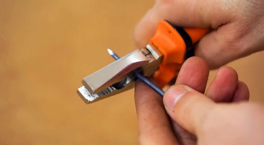Если перед шарниром по центру в пассатижах просверлить сквозное отверстие, то с его помощью будет легко и удобно перерезать стержневые детали типа гвоздей, прутков, спиц и т. д., диаметр которых не превышает диаметра просверленного в пассатижах отверстия.