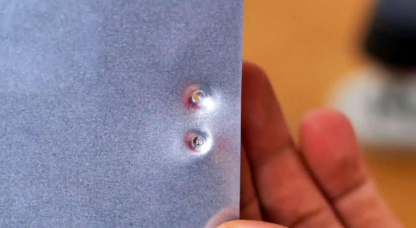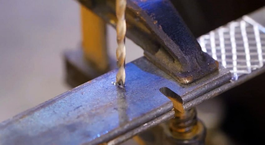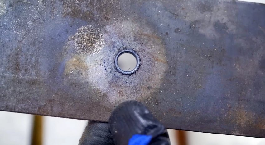 Теперь с помощью подходящей оправки развертываем отверстия в металле. Также это можно сделать с помощью хвостовика негодного сверла, зажатого в патроне сверлильного станка. Задаем высокие обороты и сильно прижимаем хвостовик к отверстию, которое нужно увеличить в диаметре. Отверстие формируется с образованием с двух сторон кольцевых буртиков.