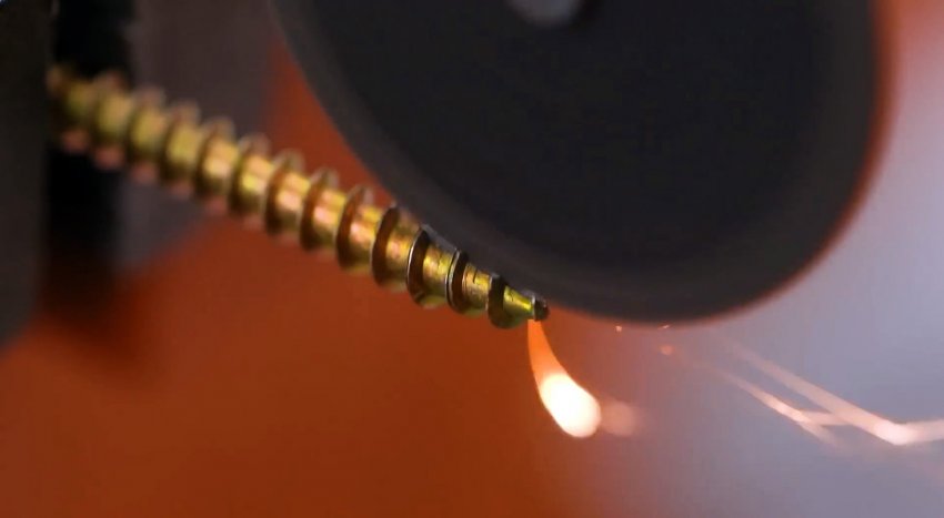 На 3-4 концевых витках шурупа с помощью болгарки выполняем прорези в продольном направлении.