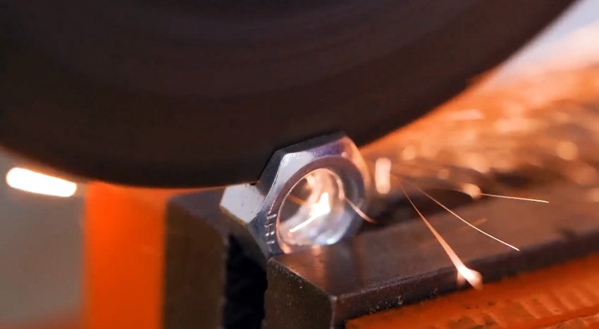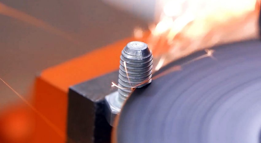 На наждаке скругляем шестигранную головку болта, оставив внизу тонкий поясок.