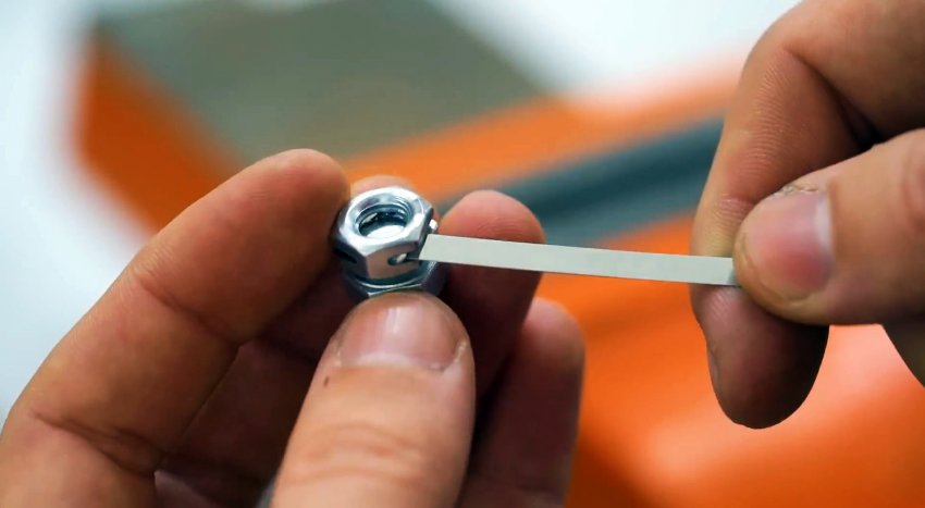 В стандартной шестигранной гайке выполняем с двух сторон поперечные пропилы без их соединения.
