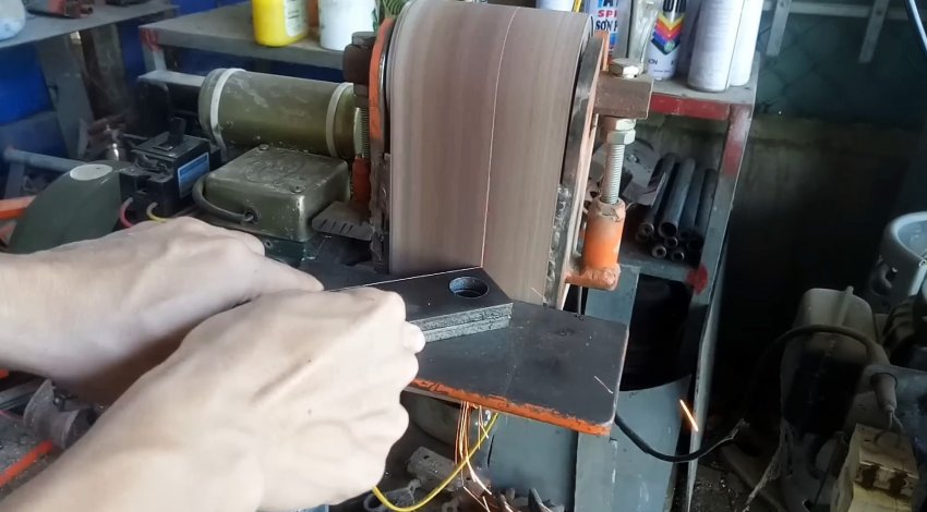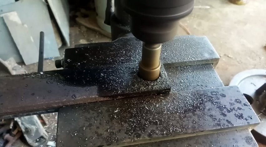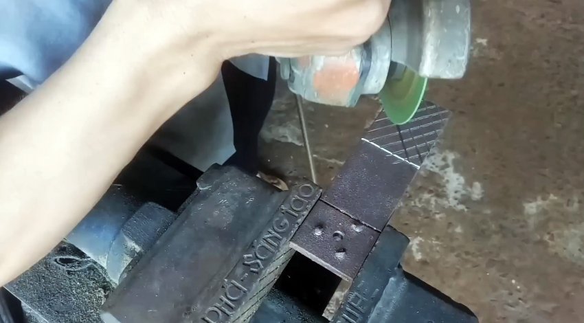 Отрезаем от полосы 2 отрезка длиной по 20 см, которые прихватываем в двух местах сваркой. Сверлим в них с двух сторон отверстия и скругляем углы.