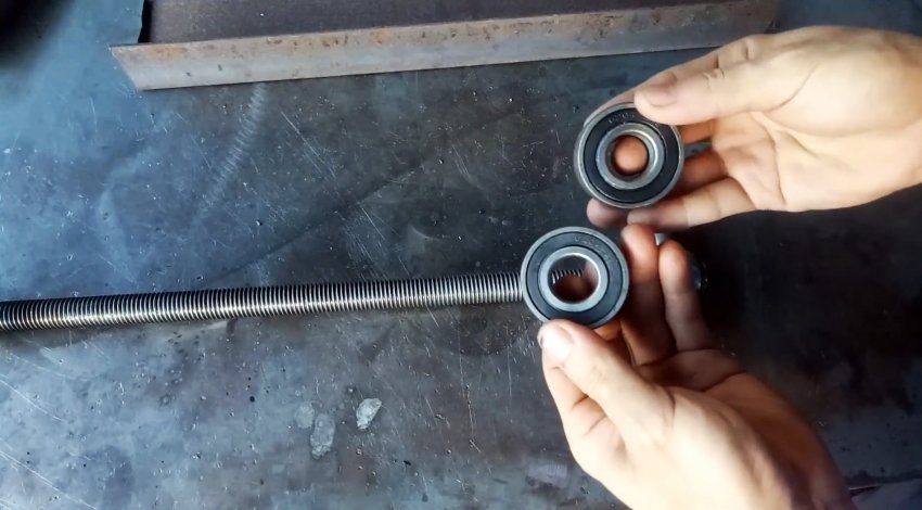 Накручиваем на ходовой винт гайку с приваренными отрезками, на которые надеваем подшипники.
