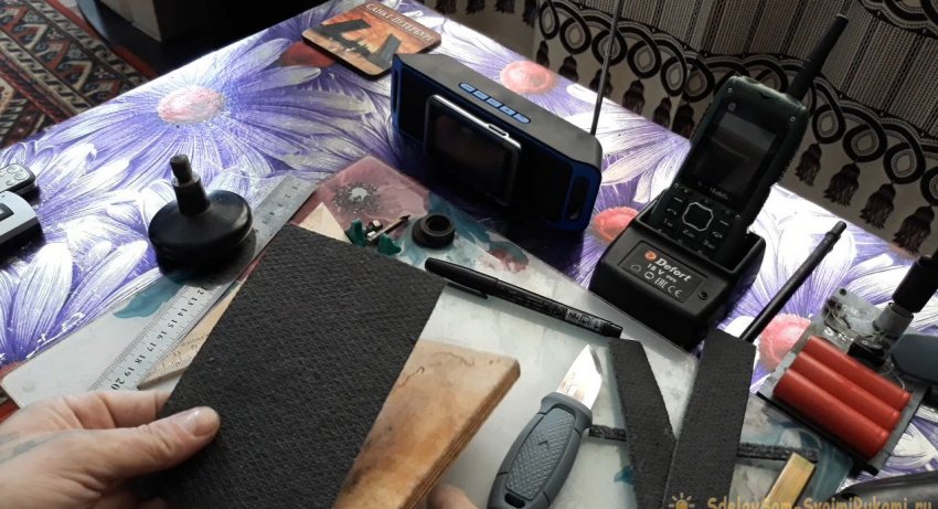 Таких же размеров вырезаем и прямоугольник из ковролина, или резины.